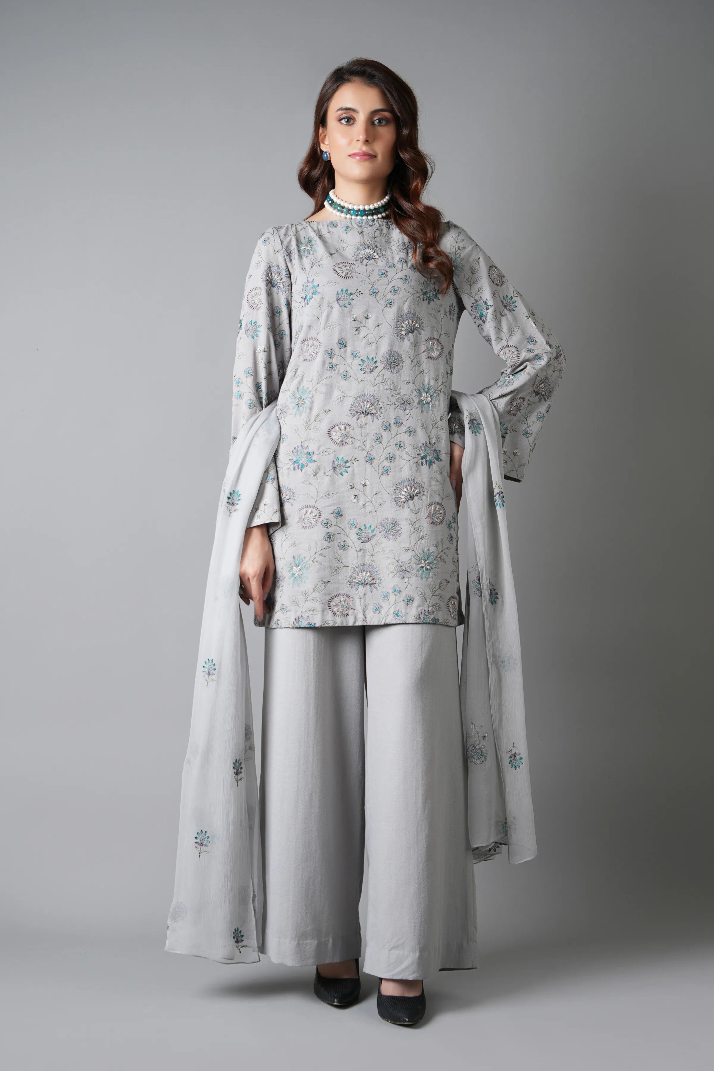 With its exquisite design, premium materials, and impeccable craftsmanship, the Bareeze Celosia Spark-Grey Karandi Suit is the perfect choice for brides who want to look and feel their best on their Winter Casual Collection. It is a timeless piece that will be cherished for years to come.
