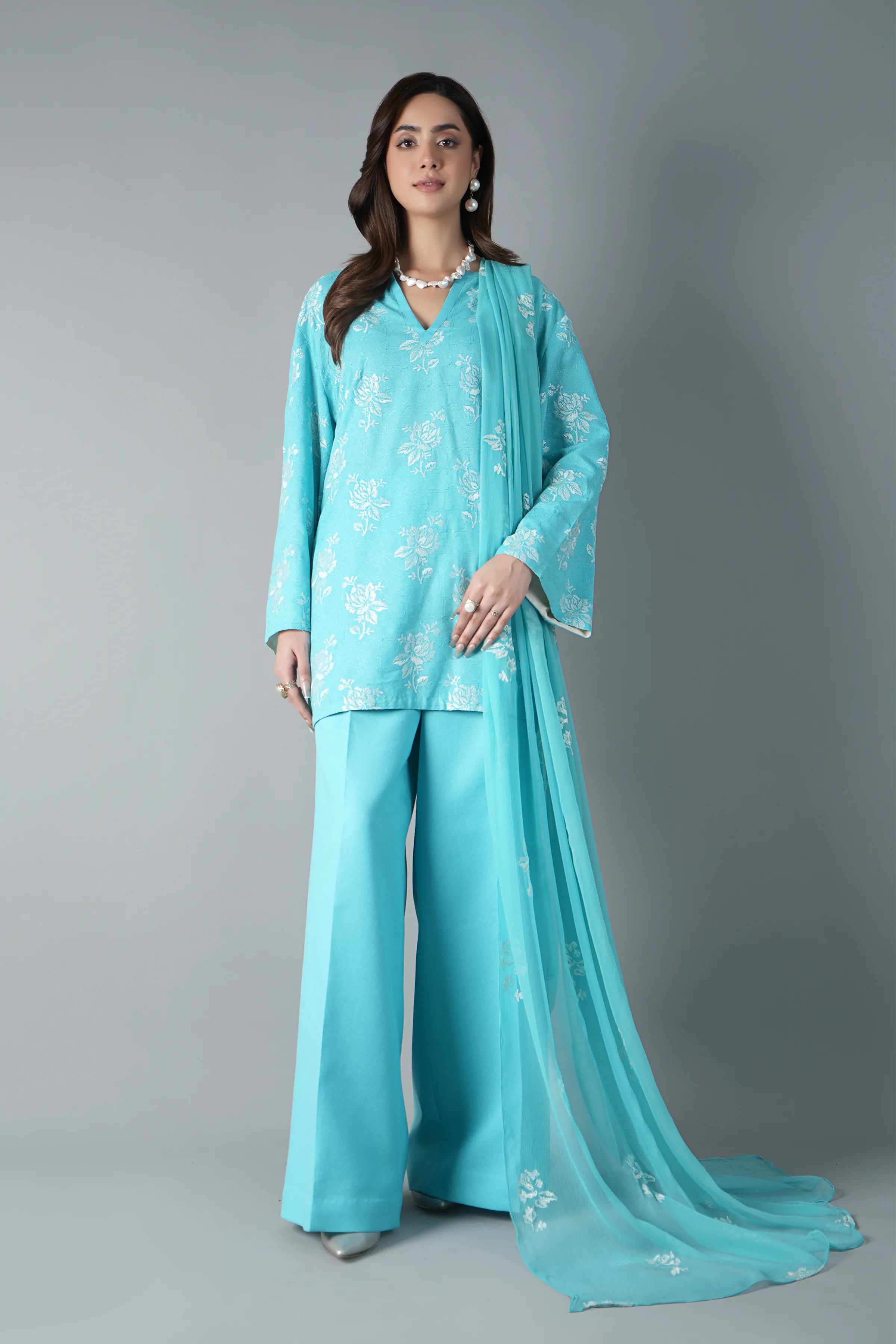 With its exquisite design, premium materials, and impeccable craftsmanship, the Bareeze Geometric Floral-02-Ferozi Karandi Suit is the perfect choice for brides who want to look and feel their best on their Winter Casual Collection. It is a timeless piece that will be cherished for years to come.