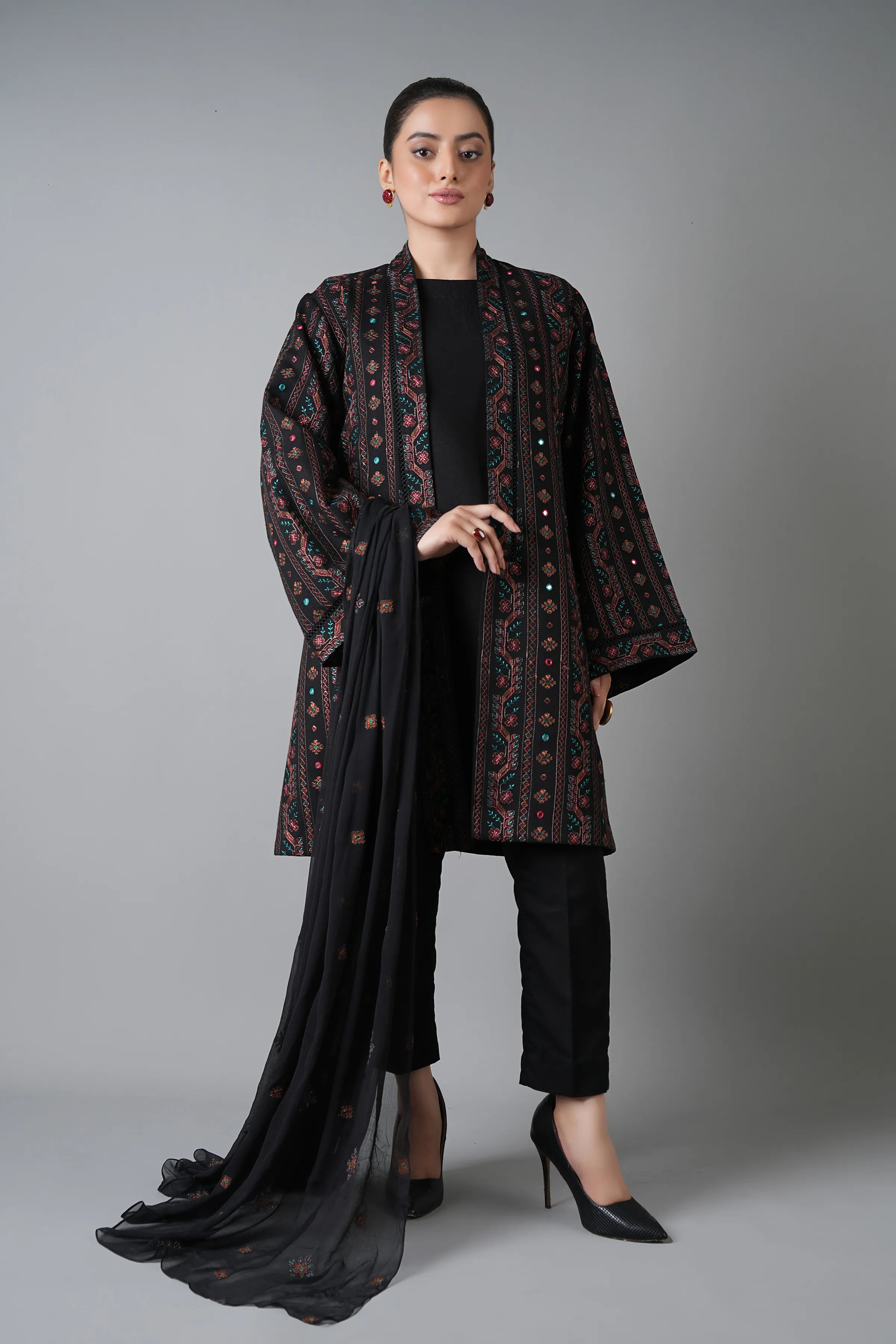 With its exquisite design, premium materials, and impeccable craftsmanship, the Bareeze Persian Influence-Black Karandi Suit is the perfect choice for brides who want to look and feel their best on their Winter Casual Collection. It is a timeless piece that will be cherished for years to come.
