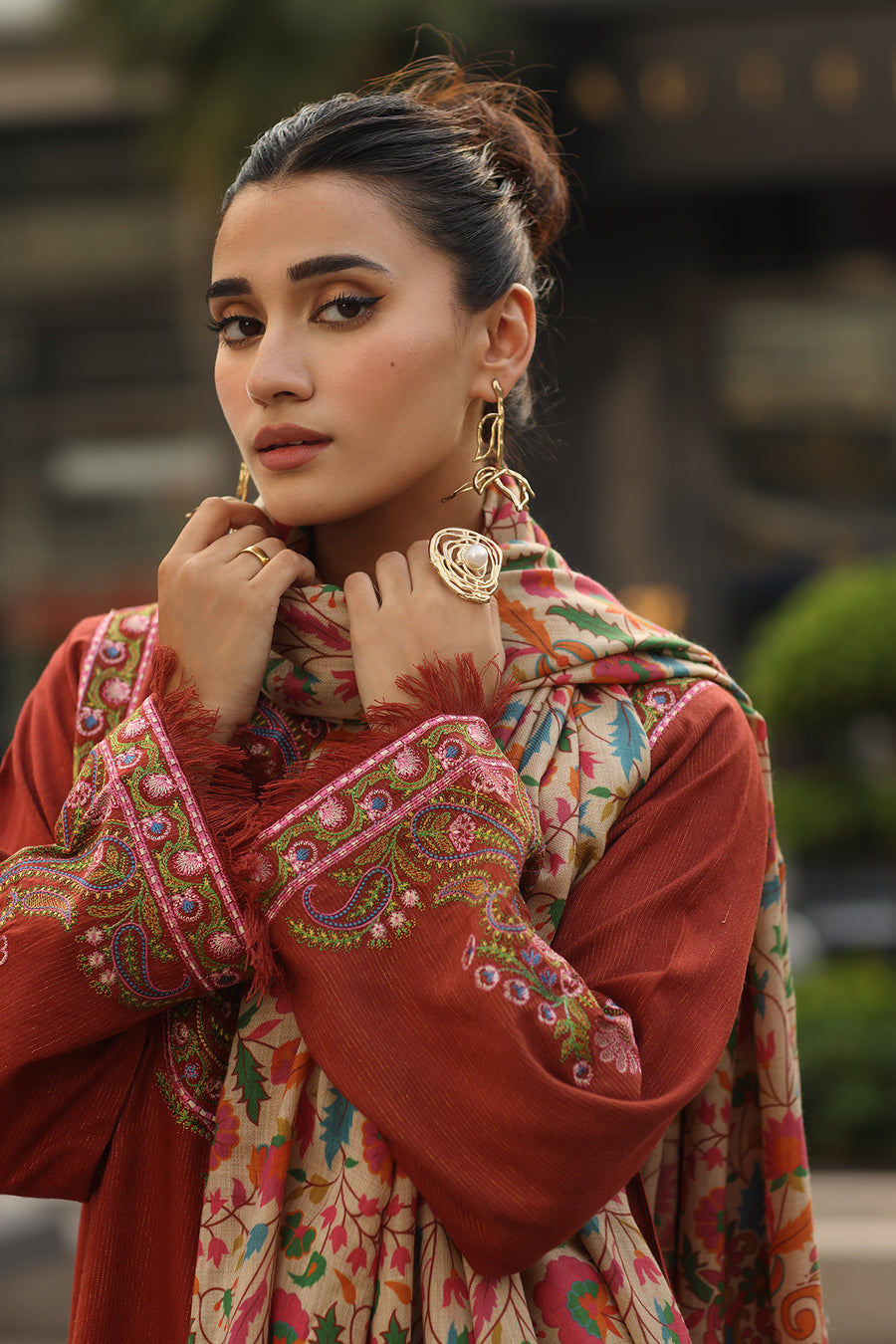 The Charizma CNP-5-312 Pashmina Shawl is a masterpiece designed to make you feel like a queen on your special day. Crafted with exquisite attention to detail, this ensemble is a perfect blend of elegance, comfort, and style.
