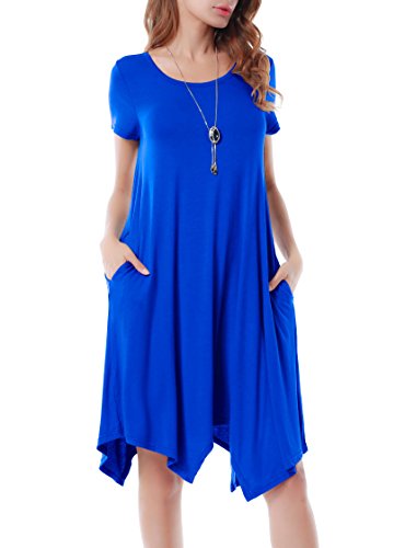 Women Casual Loose Soft Crewneck Short Sleeve Pockets Swing T-Shirt Dress
