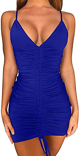 Women's Sexy Adjustable Spaghetti Strap Backless Ruched Bodycon Dress for Club