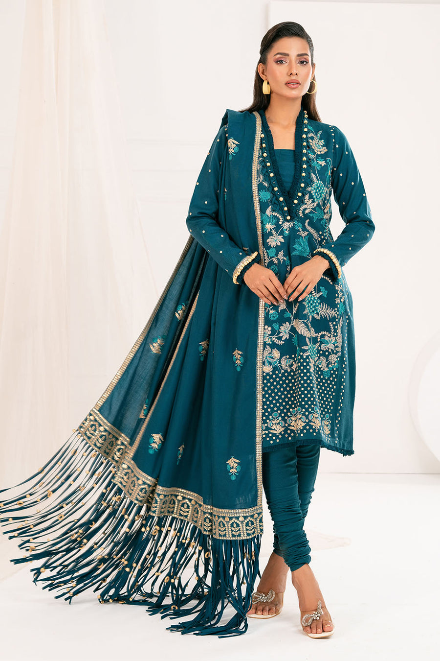 The Gul Ahmed AP-52010 Pashmina Shawl is a masterpiece designed to make you feel like a queen on your special day. Crafted with exquisite attention to detail, this ensemble is a perfect blend of elegance, comfort, and style.