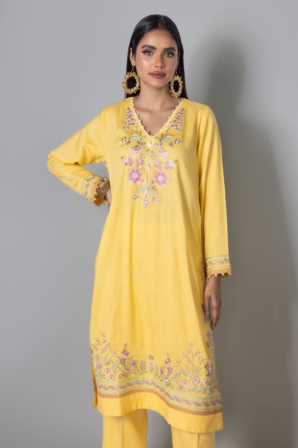 Khaadi EST24198 L Yellow , 100% original authentic product and standard size of fabric meter provide from brand