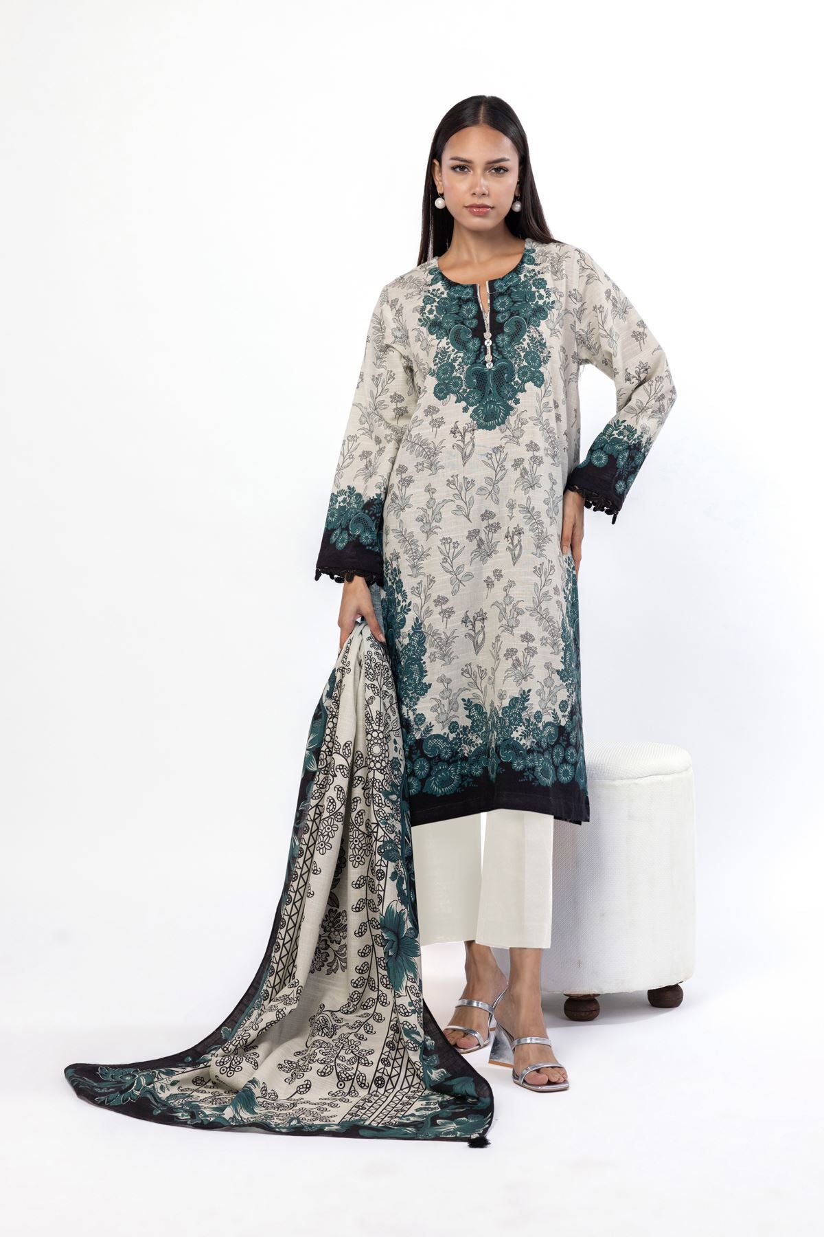 The Khaadi Winter KN25B Khaddar is a masterpiece designed to make you feel like a queen on your special day. Crafted with exquisite attention to detail, this ensemble is a perfect blend of elegance, comfort, and style.