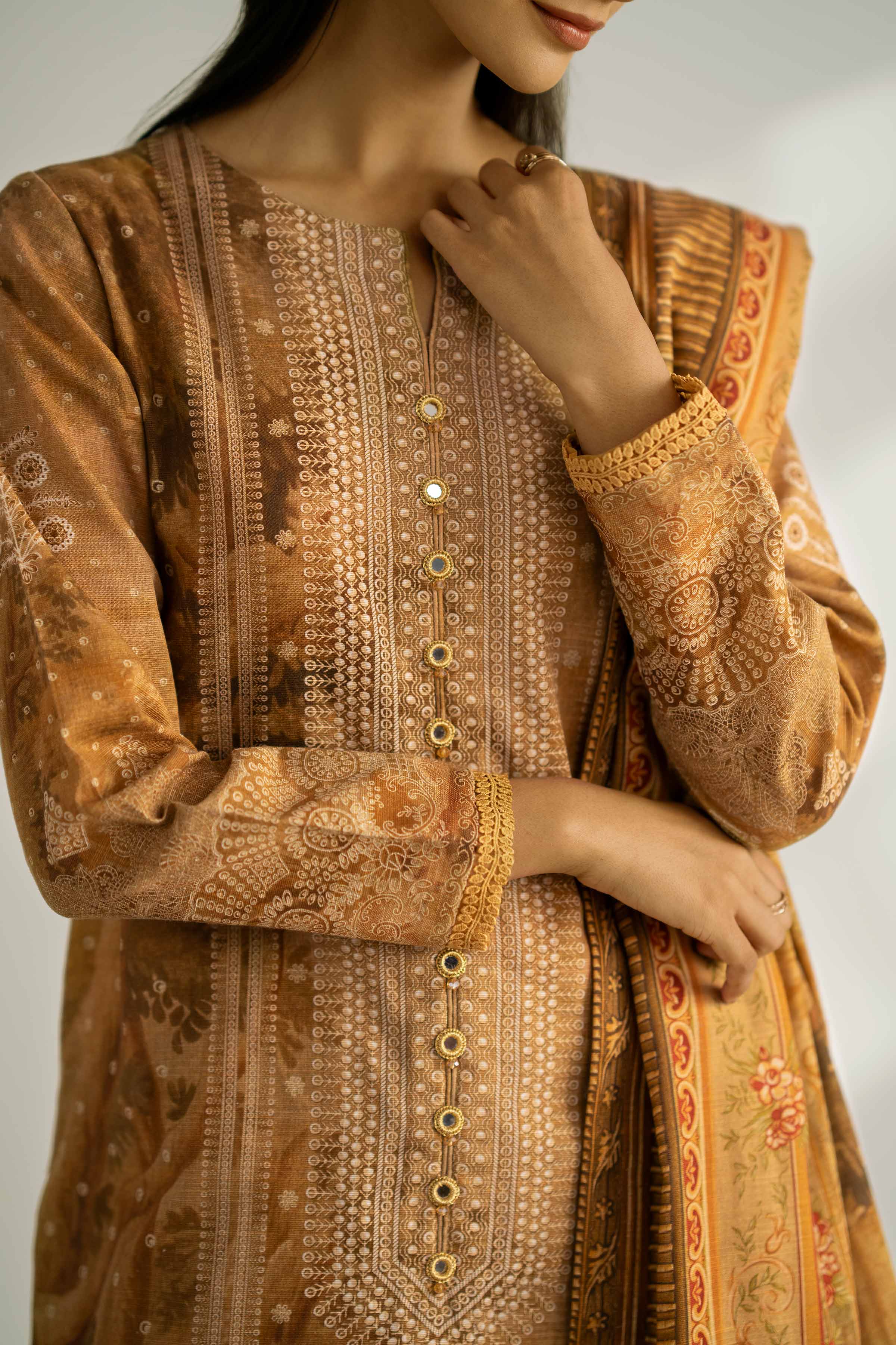 The Nishat Linen 42502422 Khaddar is a masterpiece designed to make you feel like a queen on your special day. Crafted with exquisite attention to detail, this ensemble is a perfect blend of elegance, comfort, and style.