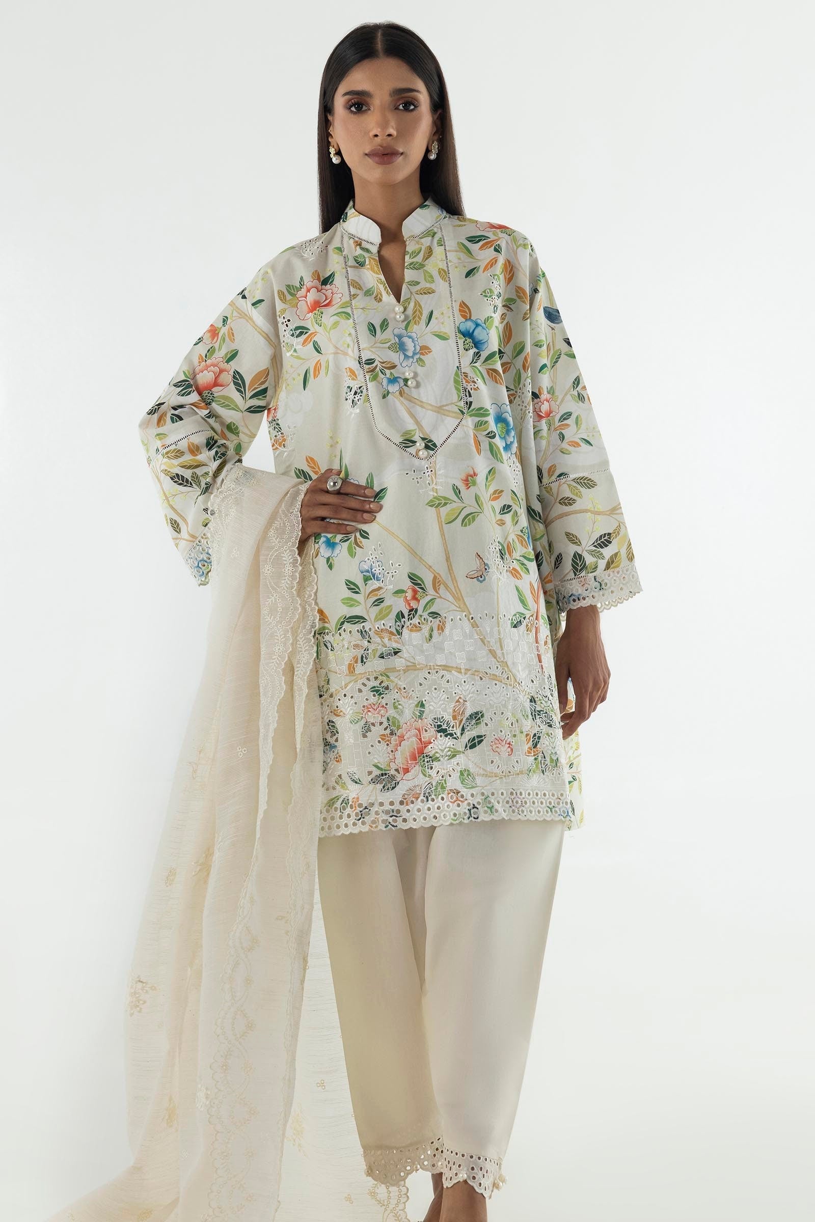 The Sana Safinaz SC25SGE244 Lawn is a masterpiece designed to make you feel like a queen on your special day. Crafted with exquisite attention to detail, this ensemble is a perfect blend of elegance, comfort, and style.