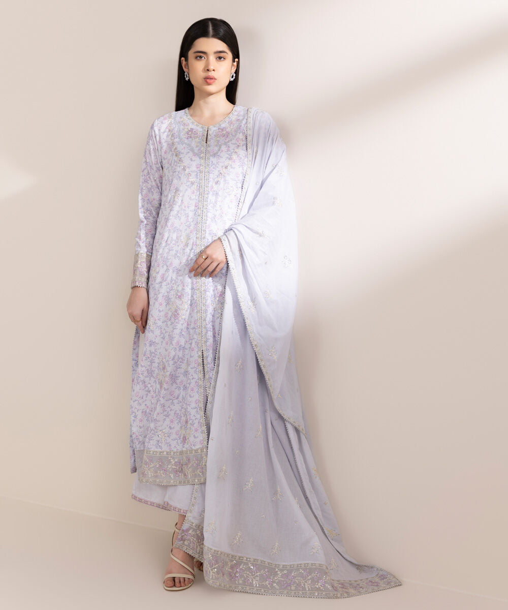 With its exquisite design, premium materials, and impeccable craftsmanship, the Sapphire 3 Piece - Embroidered Jacquard Suit 3PRSGS25V31S Lehengas Suit is the perfect choice for brides who want to look and feel their best on their Eid 1 RTW. It is a timeless piece that will be cherished for years to come.