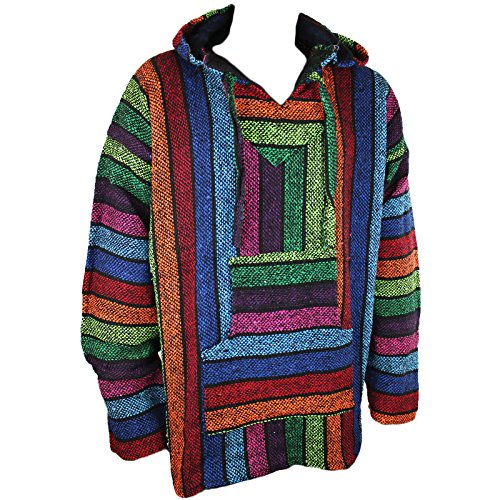Ethnic Mexican hooded top, with a durable rustic exterior and a soft brush interior Popular with Surfers, Bikers and Hippies 50% Acrylic, 50% Cotton