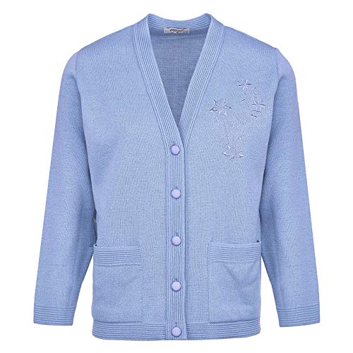 New Senior Ladies Classic Cardigan Embroidery Long Sleeve Pockets Elderly Women