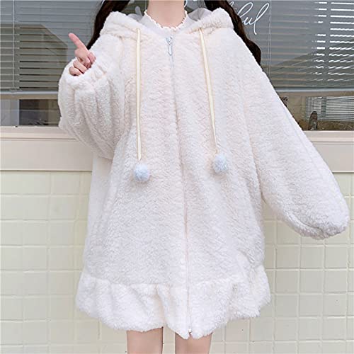 Women Cute Bunny Ear Long Sleeve Fuzzy Fluffy Rabbit Tops Sweatshirt Hoodie Jacket Coats