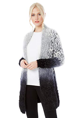 Women Fluffy Animal Print Longline Cardigan - Ladies Leopard Comfy Casual Cosy Knitwear Edge to Edge
