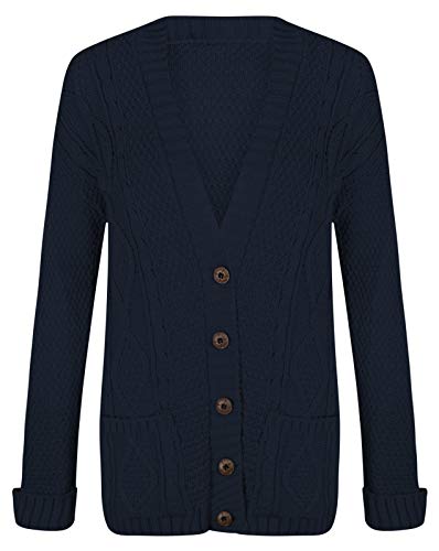 Womens Cable Knitted Button Cardigan Long Sleeve Ladies Boyfriend Top