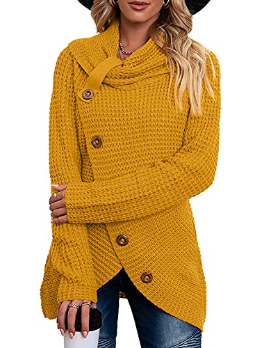 Material: Women Sweater, Cowl neck pullover sweater made of soft and lightweight material, keep you warm in fall or winter. Button is a decoration; our sweater is pullover style, not a poncho. Design: chunky pullover knit sweater, and the autumn and winter seasons are very comfortable and warm;casual style, turtle cowl neck, cross-wrap design, long sleeve, asymmetric hem, button details is a very cute design(The buttons are decoration only). Acrylic