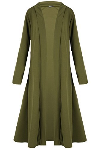 Womens Ladies Floaty Casual Waterfall Long Sleeves Open Front Duster Coat Maxi Long Cardigan Khaki