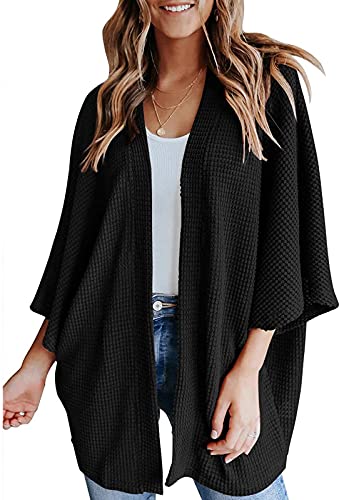 Womens Lightweight Cardigan Summer Casual Open Front Cardigan Waffle Knit 3/4 Batwing Sleeve Cardigan Fashion