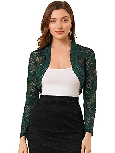 Crop Shrug Top, Floral Lace Sheer, Long Sleeve, Scalloped Design, and Open-Front Perfectly pair with a sleeveless dress, spaghetti strap, tank tops, or simple off-shoulder tops for a elegent and chic look 90% Nylon, 10% Elastane