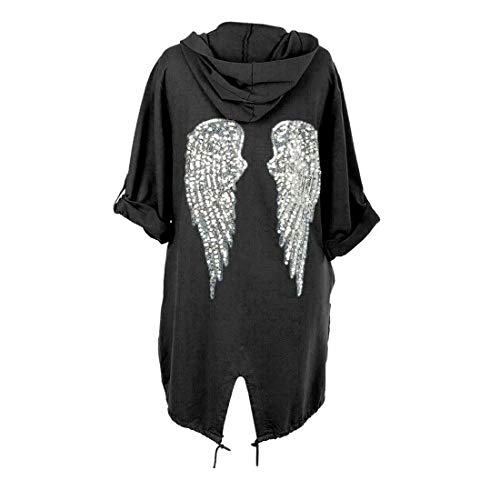Womens Sequin Angel Wings Printed Cardigan Ladies Oversized Hooded Jacket Coat