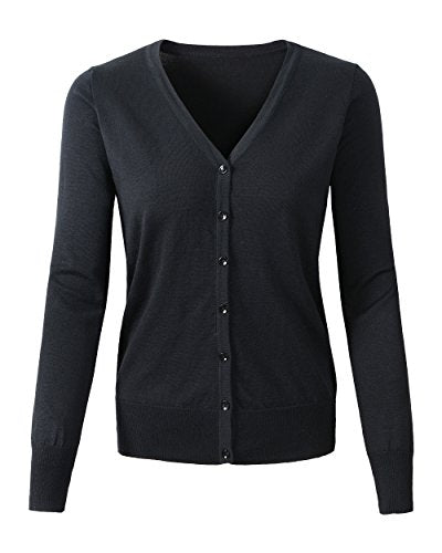 Womens V Neck Button Down Long Sleeve Basic Soft Knit Cardigan Sweater