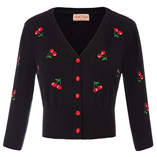 Womens Vintage 50s Cherries Embroidery 3/4 Sleeve Knitting Dress Coat Bolero Shrug Cover up GF609