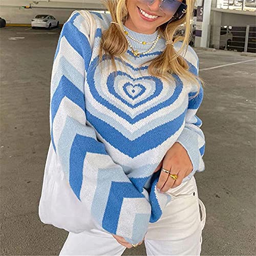 [Material]: Women jumpers sweaters are made of high quality cotton blend, skin-friendly, breathable, wear-resistant and stretchy, soft and comfortable to wear, brings a smooth touching to your skin. [Designs]: The women€s long sleeve jumpers top is knitted with Y2K love heart pattern, with comfort round neck, loose fit design, the knit pullover sweater shows your sexy figure and stylish taste. Y2k Aesthetic Gothic graphic knitwear sweatshirt top. Cotton