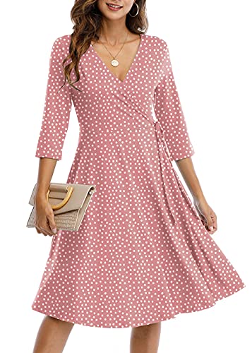 Dresses For Women Casual V Neck Floral Party Swing A-line Faux Wrap Dress Midi Length