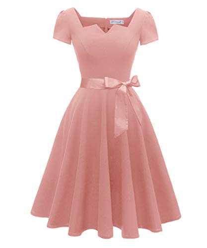 Women's Classic Tea Dress Short Sleeve Swing Cocktail Party Dresses With Pockets