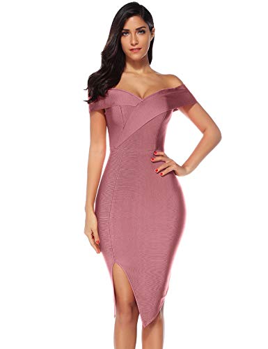 Womens Off Shoulder Slit Side Bandage Bodycon Dresss Wedding Party Dress