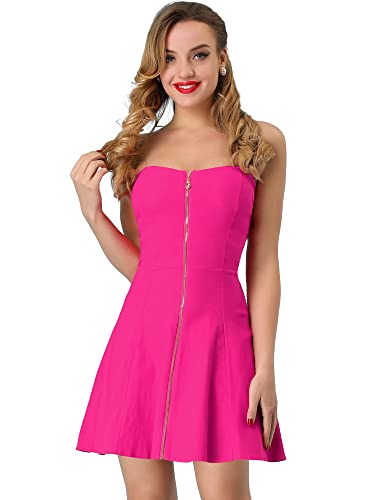 Women's Strapless Exposed Zipper Front Tube Mini Party A-line Dress