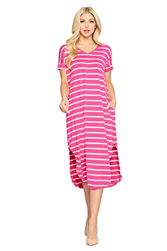 Women's Striped Curved Flowy Hem Midi Dress With Pockets Plus