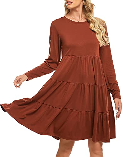 Berydress Fall Dresses for Women 2021 Long Sleeve Casual Black Cocktail Dresses Cotton Loose Flowy Tiered Babydoll Dresses