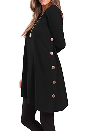iGENJUN Women's Long Sleeve Scoop Neck Button Side Sweater Tunic Dress