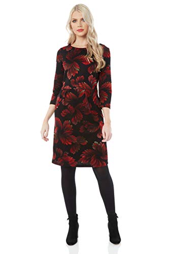 Roman Originals Women Floral Print Ponte Dress - Ladies Autumn Winter Smart Casual Work 3/4 Sleeve Tunic Bohemian Classic Knee Length Tea Loose