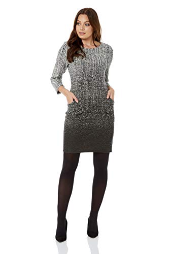 Women Ombre Shift Dress with Pockets Ladies Textured Gradient Pattern Cotton Tunic 3/4 Sleeve Work Formal Autumn Winter Party Pencil Tummy Control