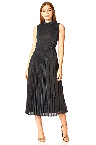 Women Shimmer Pleated Midi Dress - Ladies Autumn Winter Special Occasion Evening Party Christmas Sparkle Detail High Neck Sleeveless Fit