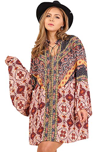 Umgee Womens Multi-Print Trumpet Sleeve Dress