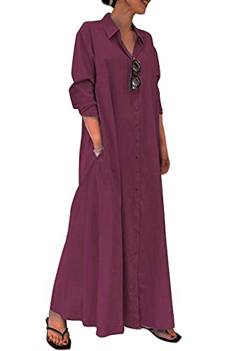 Women Maxi Shirt Dress Long Sleeve Cotton Casual Oversized Buttons Down Dresses with Pockets M L XL 2XL 3XL 4XL 5XL