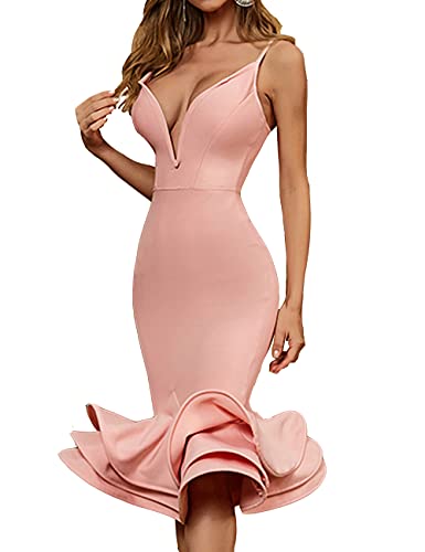 Women's Deep V Neck Sleeveless Midi Bodycon Mermaid Cocktail Party Bandage Dress