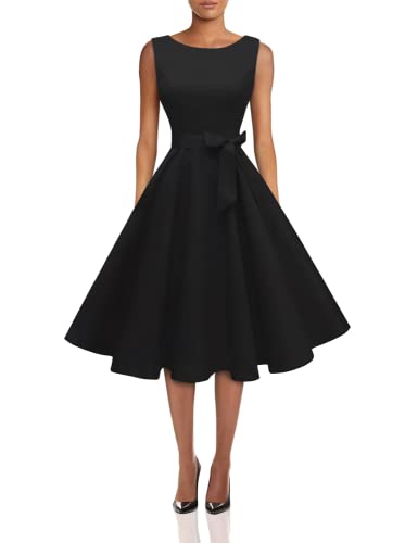 Hanpceirs Women's Boatneck Sleeveless Swing Vintage 1950s Cocktail Dress