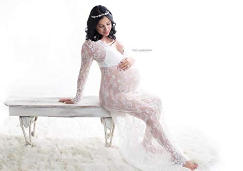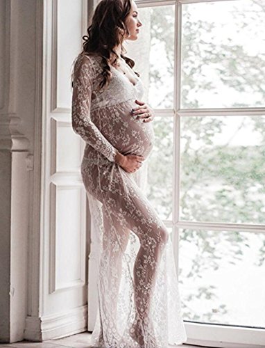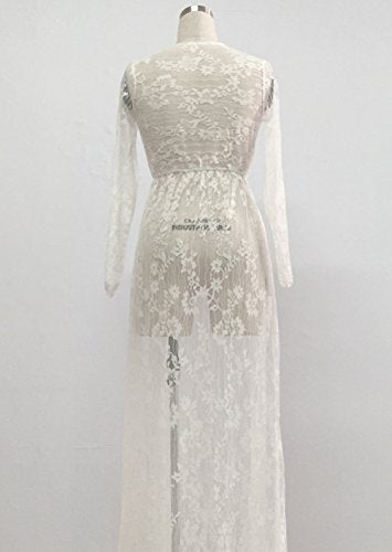 Material: Lace. Lightweight, soft material, very comfortable to wear. Hand Wash Only Features: Deep v-neck, long Sleeve, elastic in the waist, see-through, floor length.