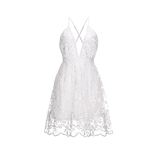 Summer Dress For Women White Lace Backless V Neck Spaghetti Strap Dres – Original Brand