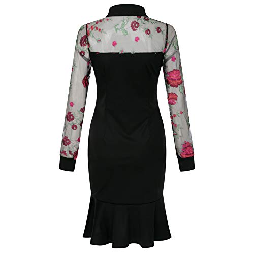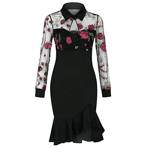 Wedding Guest Dresses For Women Sexy See Through Long Sleeve Slit Ruffles Hem Floral Slim Lace Bodycon Cocktail Dress