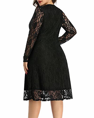 Zipper closure 【Wedding Guest Lace Dresses】Our Plus size allover floral lace dress featured a breathable lining and a flowy drape is elegant and stylish both for the wedding and the cocktail party. 【Floral Lace Dress】The cocktail dress is a fit and flare swing dress, which features floral elastic lace, breathable lining, faux wrap v neck, long sleeve, empire waist, knee length and Hidden back zipper closure