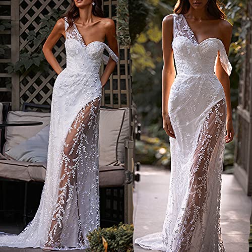Women Sleeveless Embroidery Wedding Dresses V Neck Sheer Mesh Bridal Gowns Sexy Lace Formal Bridal Dresses Maxi Dress