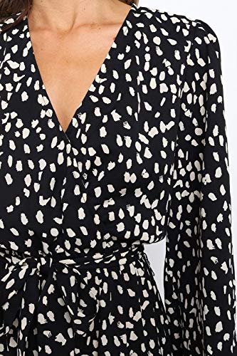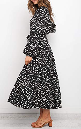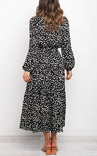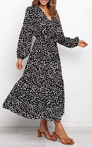 Women's Boho Leopard Print Ruffle Long Sleeve V Neck Casual Flowy Party Maxi Dress