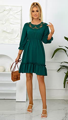 Women's Dress A-line Lace Ruffle 3/4 Sleeve Polka Dots Chiffon Casual Tunic Dress