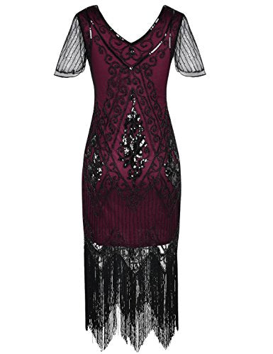 Women's Flapper Dresses 1920s Sequins Art Deco Gatsby Cocktail Dress With Sleeve