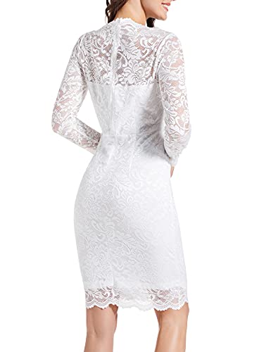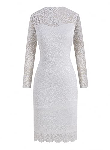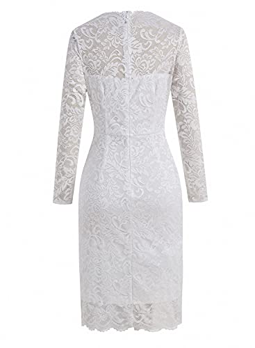 Women's Floral Lace Business Bateau Neck Long Sleeves Cocktail Wedding Guest Bodycon Pencil Dress 906