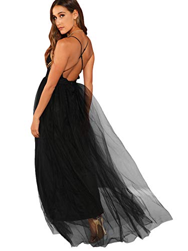 Women's Plunging Neck Spaghetti Strap Maxi Cocktail Party Dress