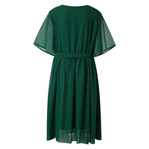 Women's Plus Size Half Sleeve Round Neck Cocktail Midi Dress Ruffle Party Dresses